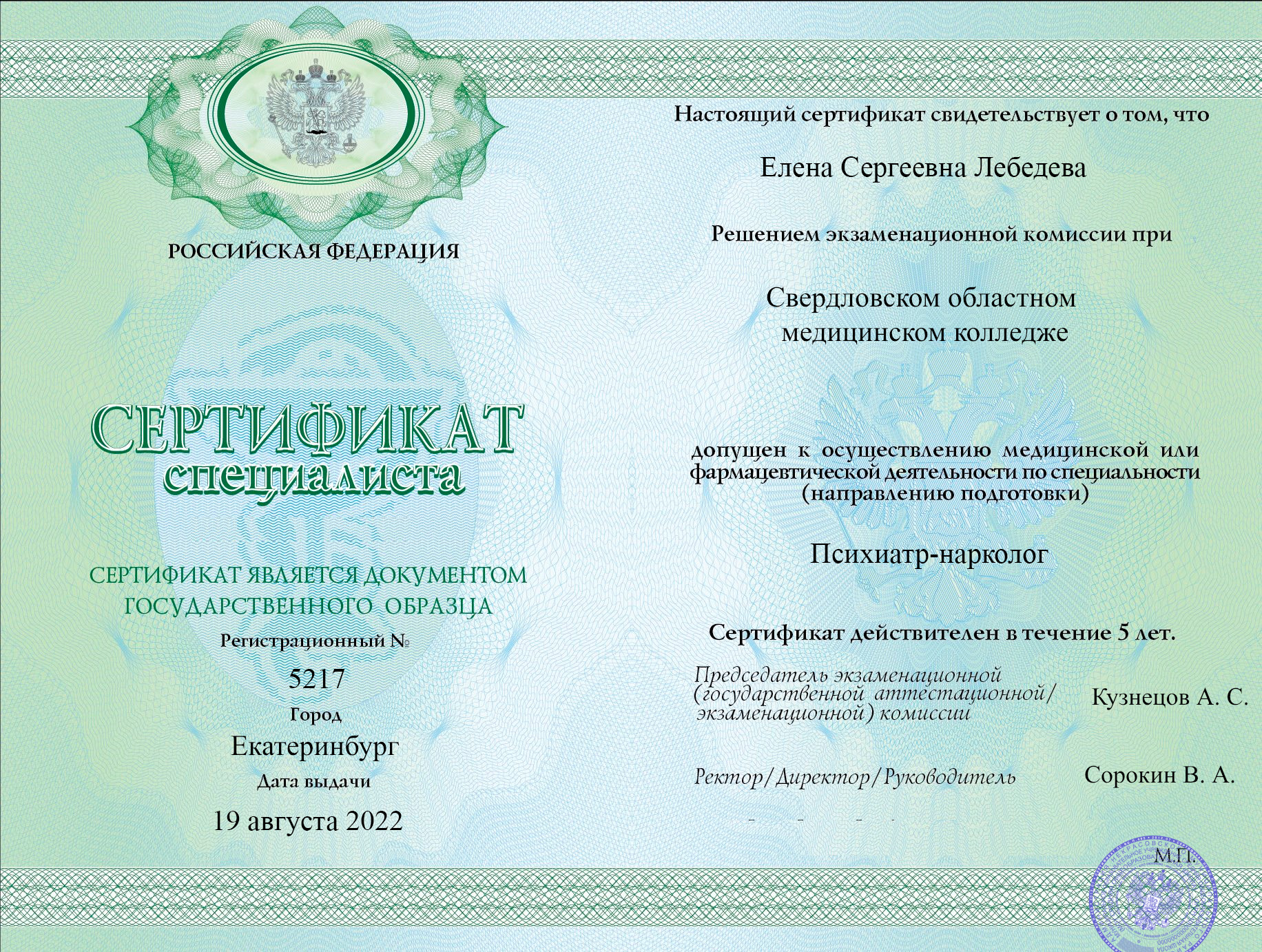 Елена Сергеевна Лебедева врач нарколог клиники доктора Стукаловой в Каменке